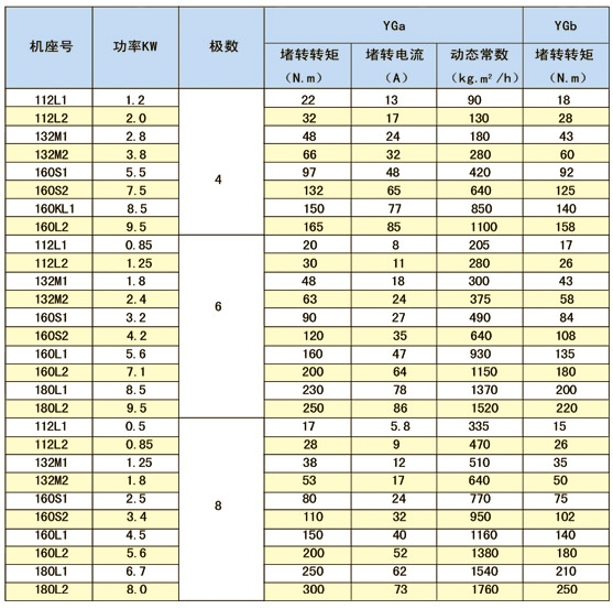 YG系列輥道用三相異步電動(dòng)機(jī)分別設(shè)計(jì)成YGA和YGB兩種工作型式,YGA適用于工作輥道,工作制為S5,
