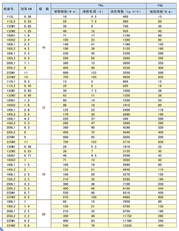 YGB適用于輸送輥道,工作制為S1。
